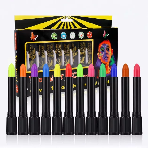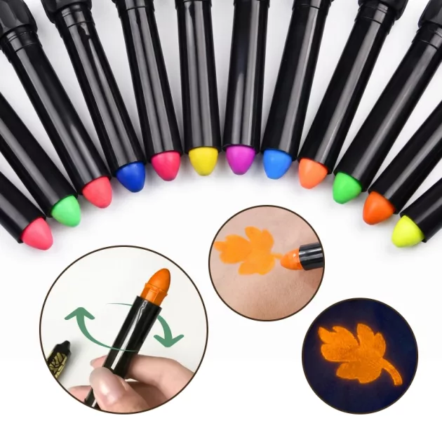 12pcs Glow in the Dark UV Face and Body Paint Marker Set for Kids