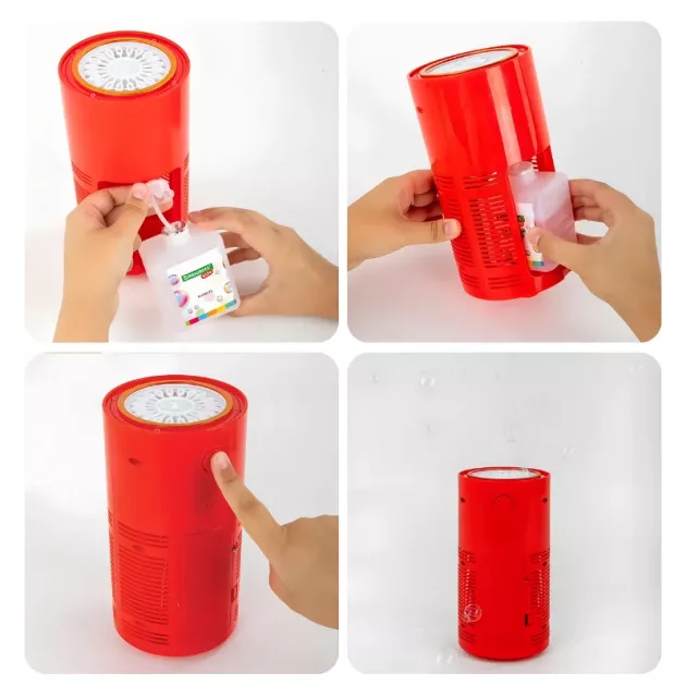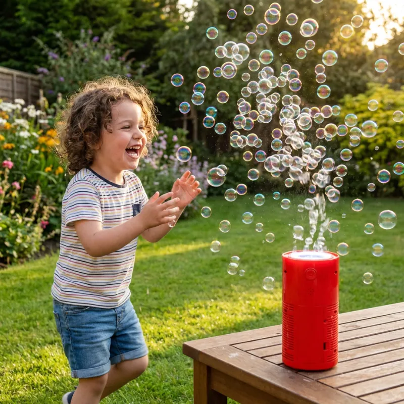 We use this bubble gadget during bath time; I place it safely away from water, and it turns normal baths into happy, silly bubble shows every weekend.
