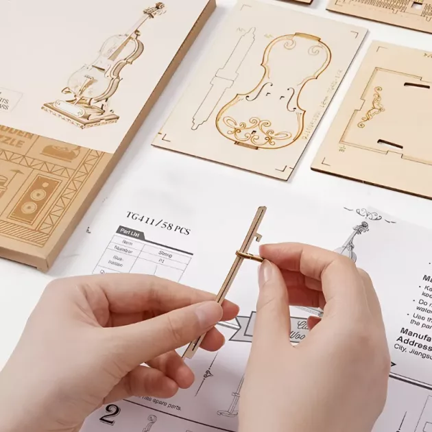 Unlock imagination through hands-on building and discovery together. Wooden pieces fit snugly, forming a realistic mini instrument. Every part encourages focus, patience and joyful achievement. Watch your child beam with pride after finishing.