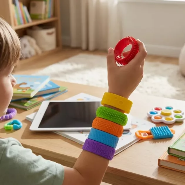 Easily support your child’s concentration wherever they go. These colourful silicone bands provide restless hands with a fun, soothing touch. Each flexible piece features a unique pattern for a delightful sensory experience. Simple to wear and safe for daily use, they help children feel comfortable during busy moments.