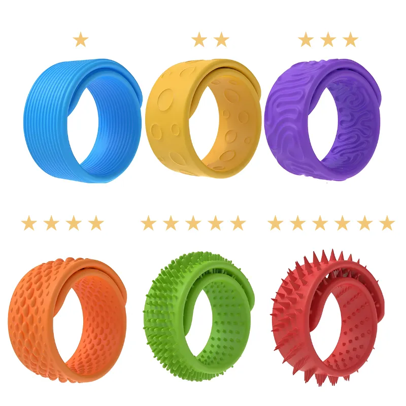Easily support your child’s concentration wherever they go. These colourful silicone bands provide restless hands with a fun, soothing touch. Each flexible piece features a unique pattern for a delightful sensory experience. Simple to wear and safe for daily use, they help children feel comfortable during busy moments.