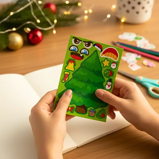 Loved how the stickers let us create silly elves and snowmen. The colors are bright, and we made up stories for each one. No sticky stuff left anywhere.