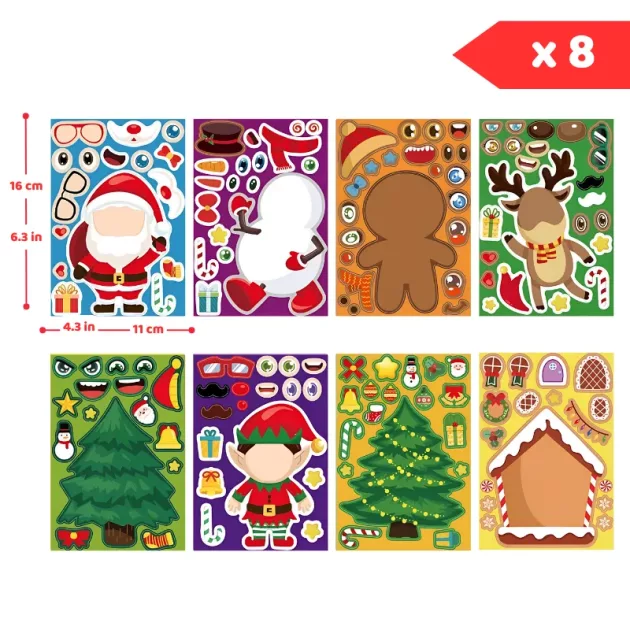 8 Sheets DIY Christmas Sticker Puzzle for Kids