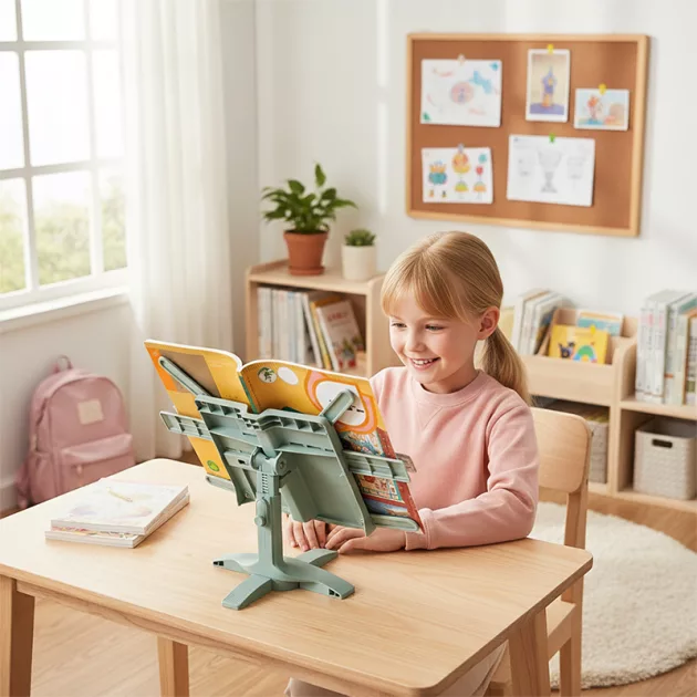My desk looks less messy, and I’t have to chase turning pages. Reading home assignments feels much easier with this stand.