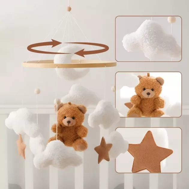 The quiet, smooth motion of the hanging toy instills peace. It’s perfect for calming our newborn before sleep. A nursery essential.