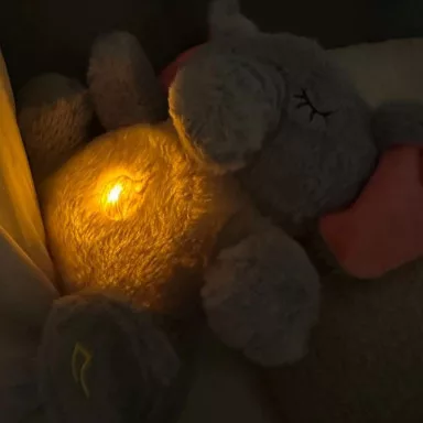 Such a wonderful product! The glowing light is warm and comforting, and the melodies are gentle enough for sleep. My baby can’t go to bed without it.