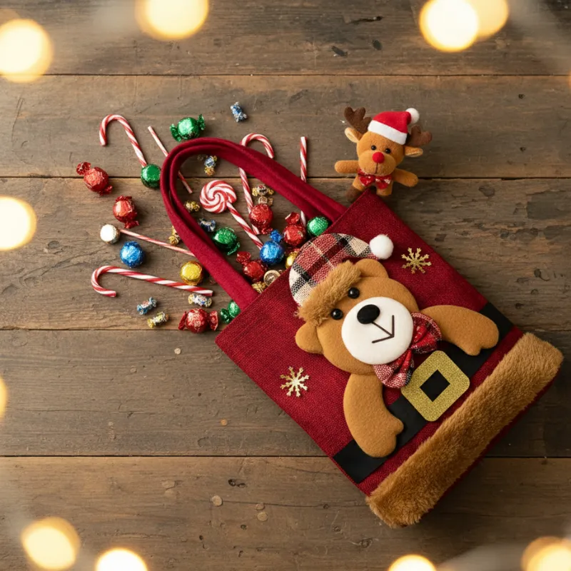 christmas gift bag, christmas cloth bag, christmas treat bags, christmas tote bags