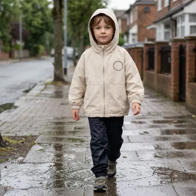 Weather Defence - Water just rolls away, so clothes underneath remain dry. No more worries about surprise showers during playtime.