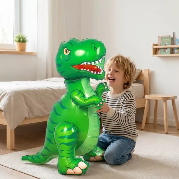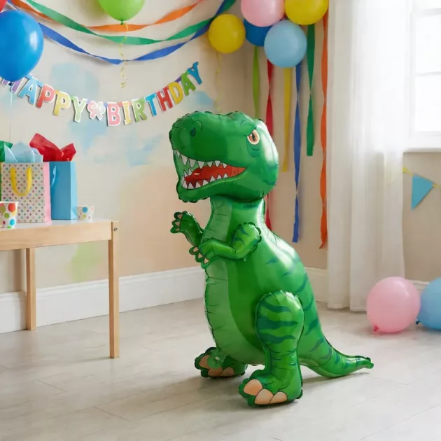 This foil dinosaur made the whole birthday feel special. It handled kids running around, banging into it, and still looked fresh the next morning.