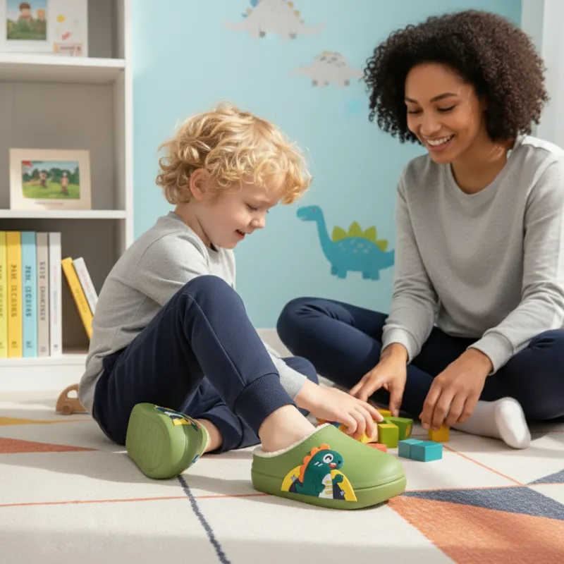 Slippers keep feet warm all day and never get stinky. Cool pattern makes my child happy, and they’re always dry after stepping in puddles.