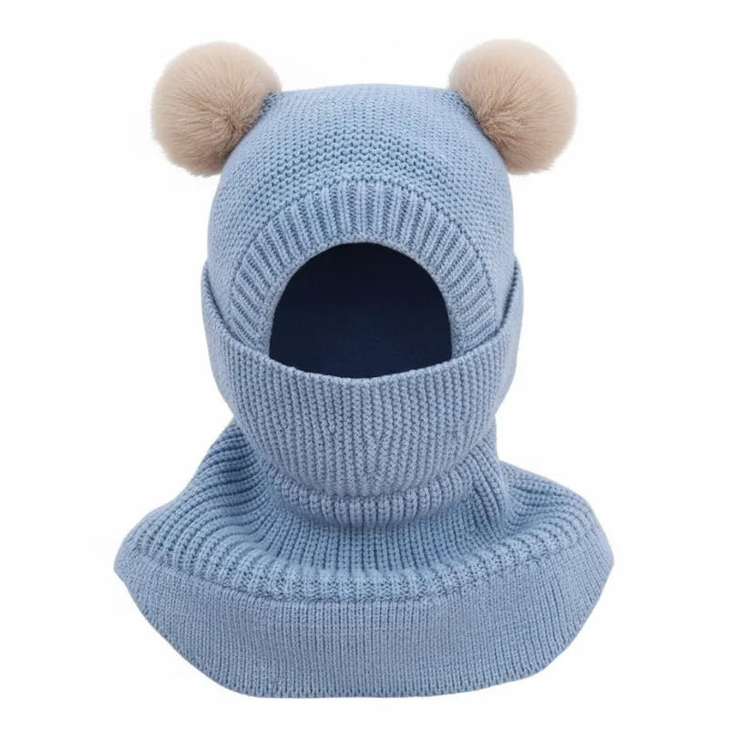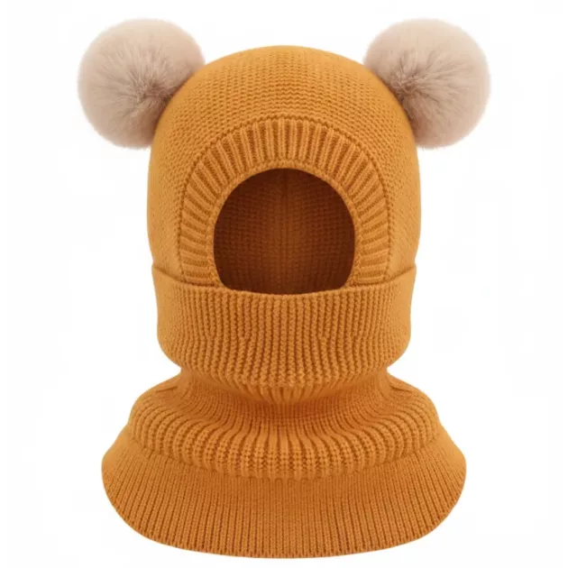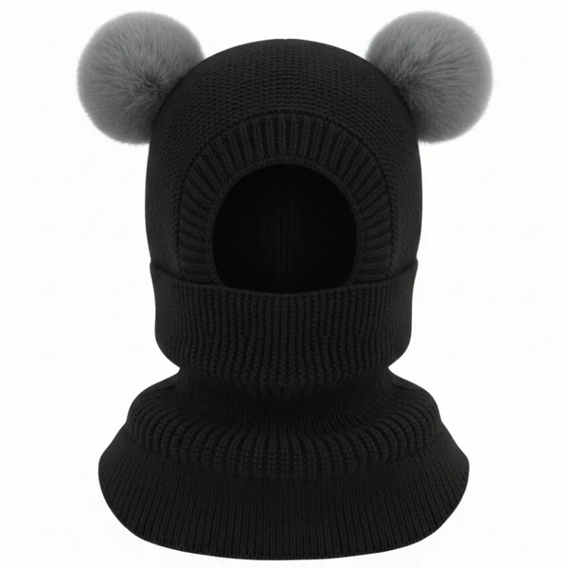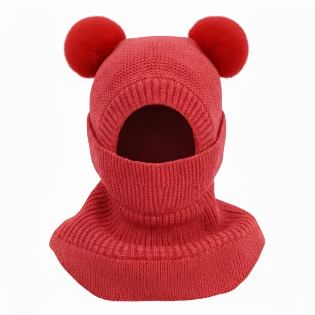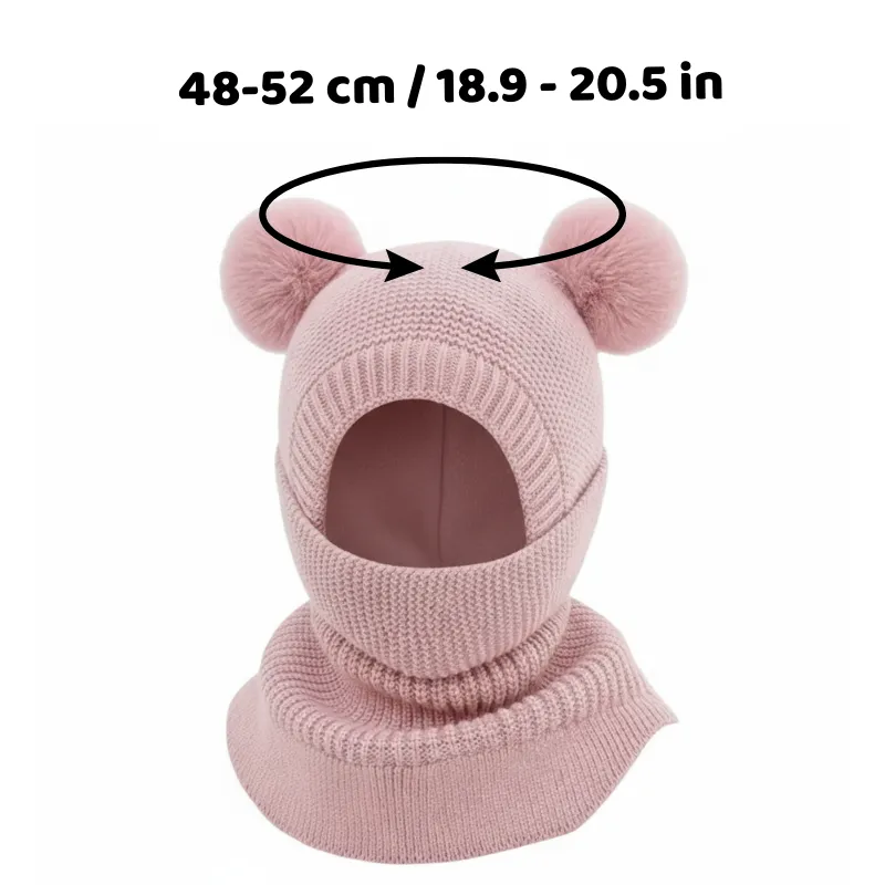 I bought the balaclava for my little cousin. She always plays outside and looks super cute running around with the pom poms!
