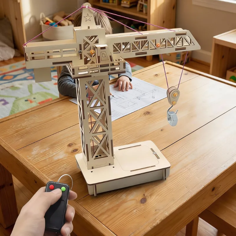 This crane became my favorite toy! Putting it together was challenging but not too hard. Feels good to see something you built move.
