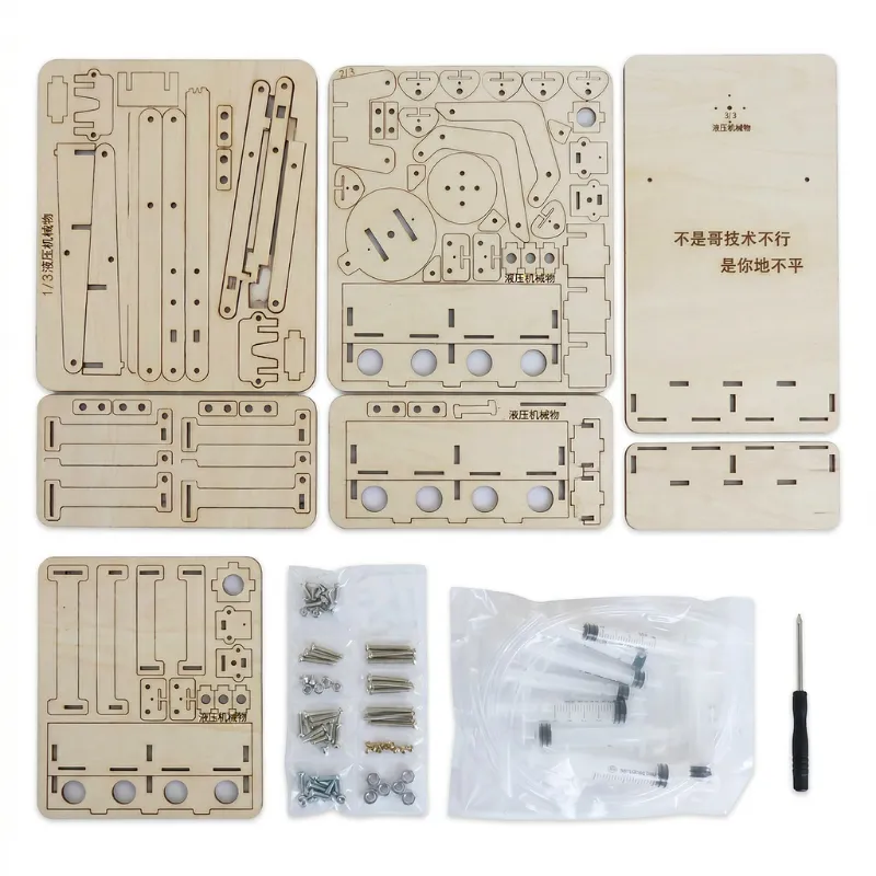 DIY Wooden Hydraulic Mechanical Arm Model Science Experiment Assembly Toy for Kids