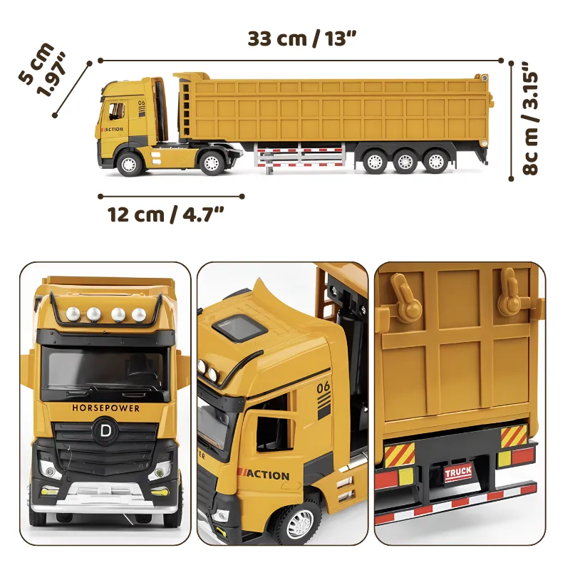 The truck’s lights and engine noises are super cool! I play every day after school, rolling it around and making up stories about construction sites.