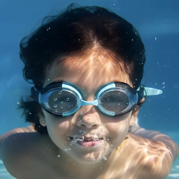 Crystal Clear View - The lenses stop mist and shield against harmful light. Your child can see every detail while swimming, enjoying every moment.
