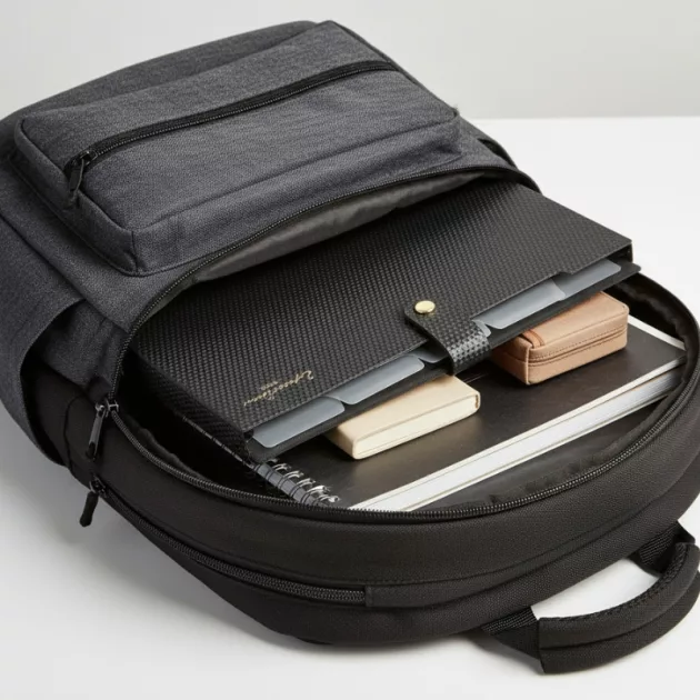 This folder fits easily in my backpack. The reinforced spine is strong and nothing falls out. I feel more ready for class now.