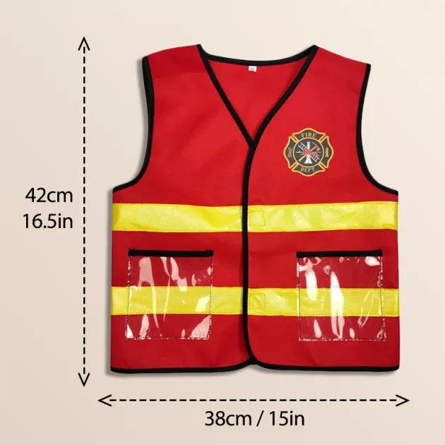 My son loves playing hero now thanks to this awesome firefighter gear. The hat fits well and the vest is so easy to put on.