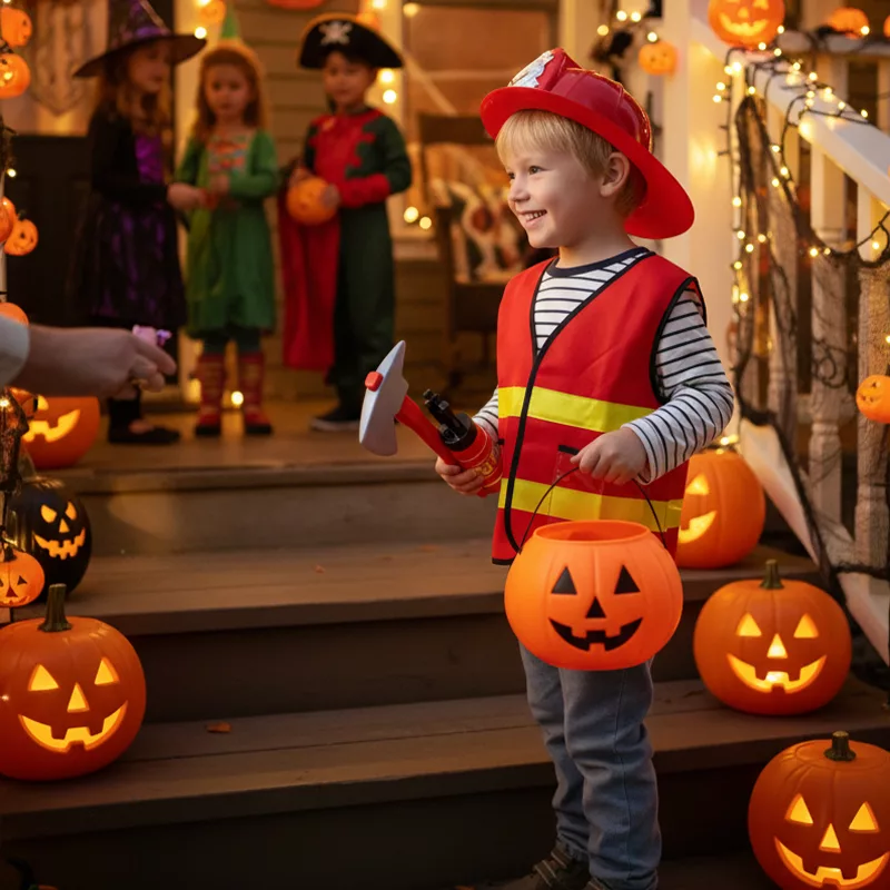 We got this firefighter set for Halloween and our son was thrilled. No fuss putting on the vest and it didn’t itch at all.