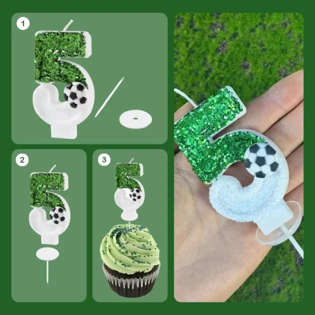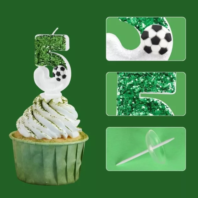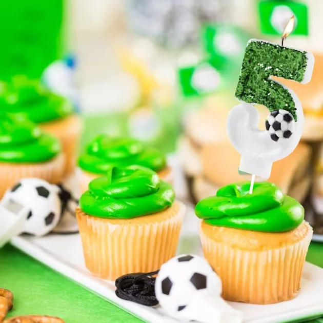 Loved how the soccer-shaped candle added fun to our celebration. The green sparkles shined brightly and it looked amazing in photos too.