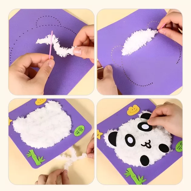 My son sat with his grandma and stitched the panda together. It kept him focused and happy for a couple of hours. Really sweet idea.