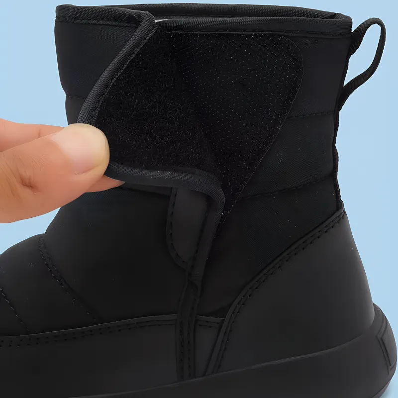 Easy to get on, plus the thick soles make climbing snowy hills a breeze. No chilly feet, just lots of fun outside.