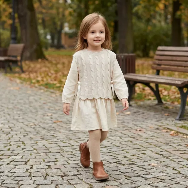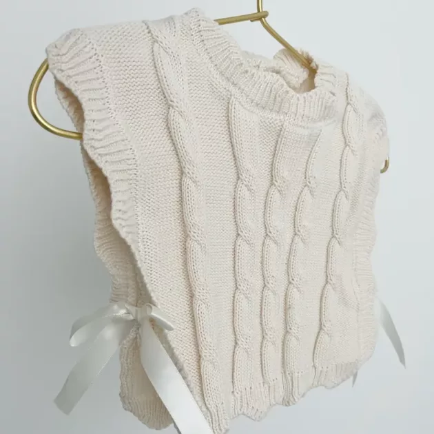 My niece usually hates extra layers, but she happily wears this soft sleeveless knit. It stretches nicely when she plays and still looks neat afterward.