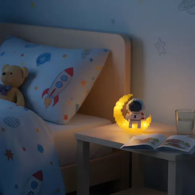 Building the astronaut set with my brother was so much fun, and the glowing light at night helps me sleep better. It makes my room feel like space!