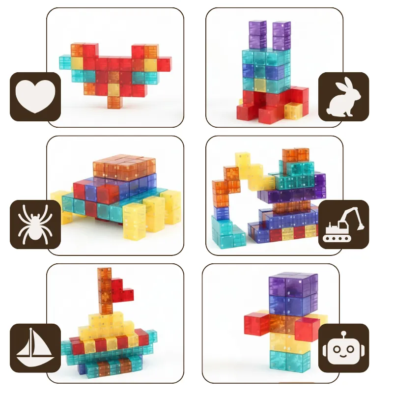 Magnetic Building Blocks Transparent Construction Cubes Montessori Toy for Kids