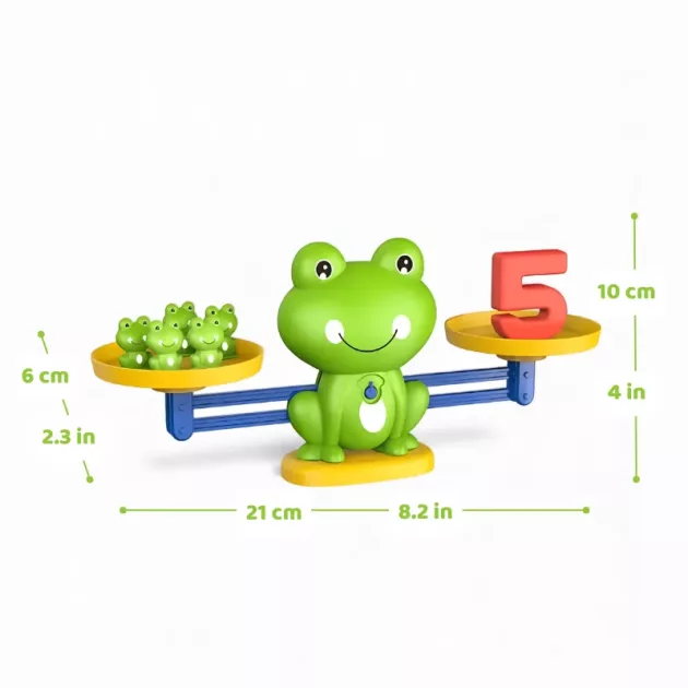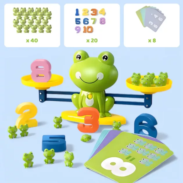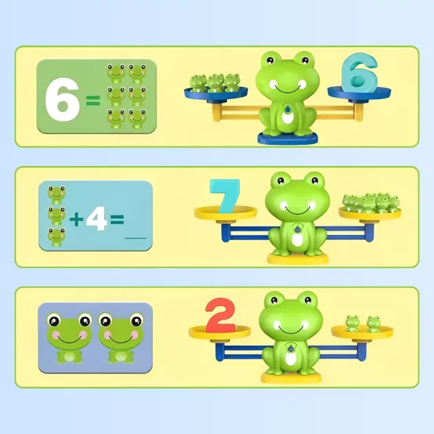 We had lots of fun on rainy days figuring out how many frogs made the balance even. My child now loves math lessons at school, too.