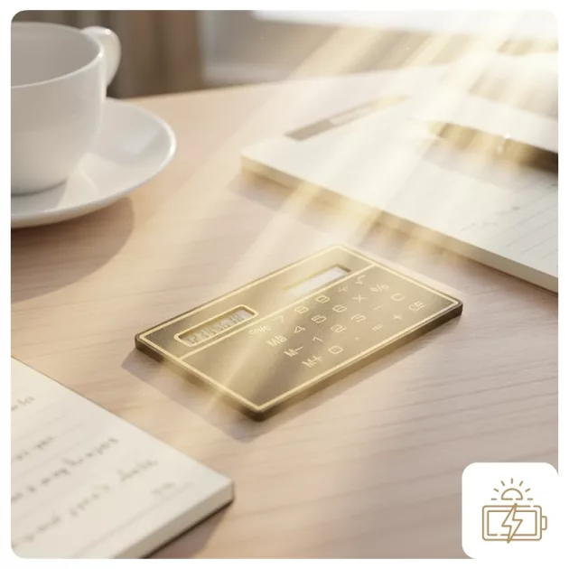 Cool calculator! Slides right into my pencil pouch. The numbers show up really clear and it always works because it’s solar powered.