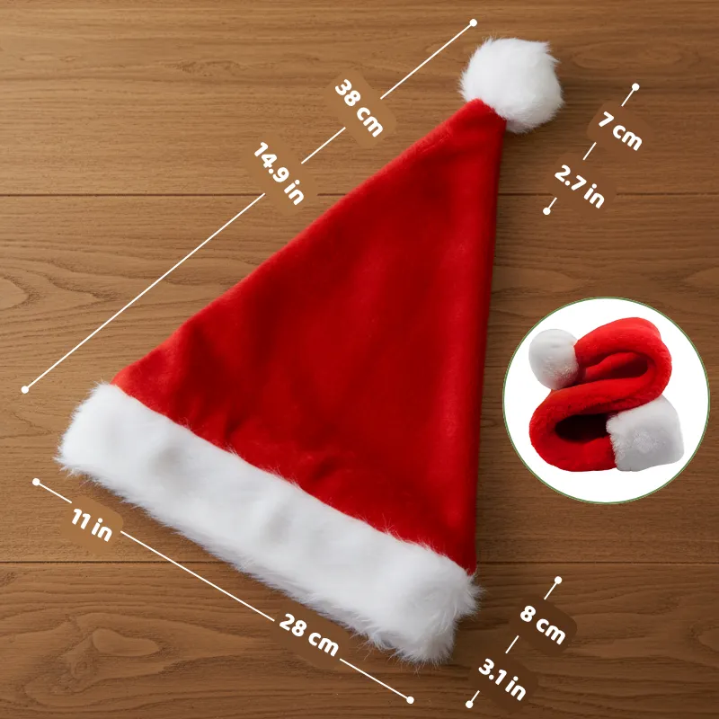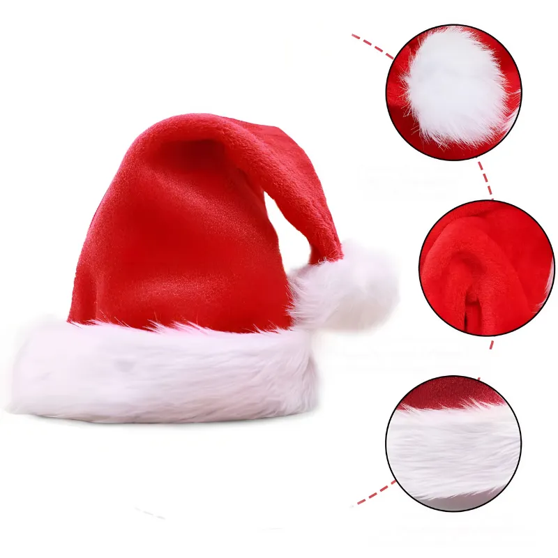red santa hat, red christmas hat, santa claus hat, plush santa claus hat