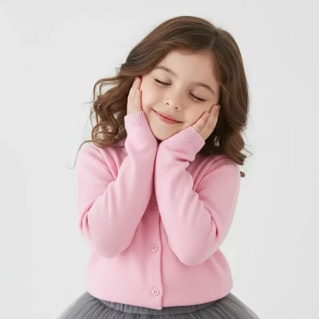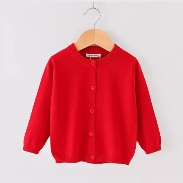 Short Cotton Button-Up Cardigan Sweater for Kids