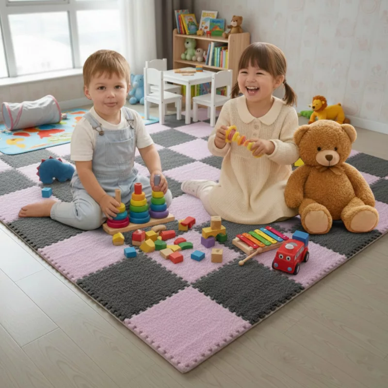 Children need a space that is inviting for games and imagination. Plush surface keeps feet warm while protecting delicate skin. Interlocking tiles fit any room quickly and bring vibrant style. Cleaning is simple, so you spend less time worrying.