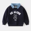 The denim collar is such a stylish touch. My son looks sharp and he’s comfy whether we’re indoors or outside. No complaints about scratchy material.