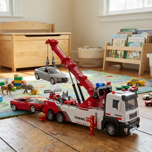 This truck lets us play together without worries. The hooks make carrying other toys super fun. It’s a must-have for pretend rescue play.