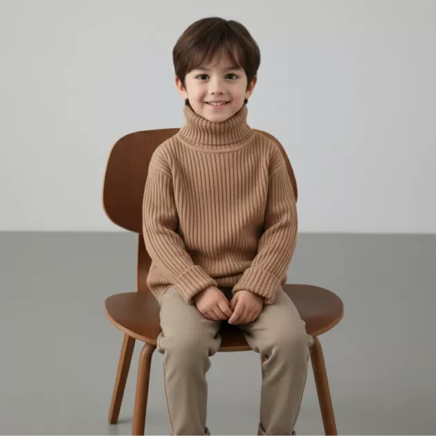 Warm Knit Oversized Sweater Turtleneck Chunky Jumper for Kids